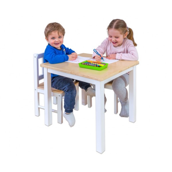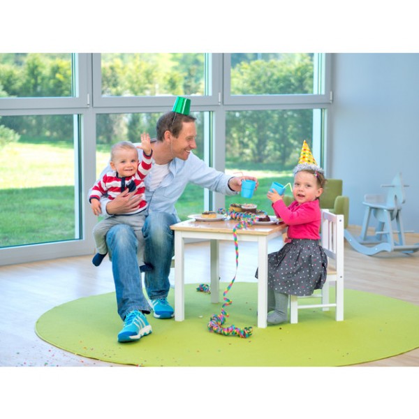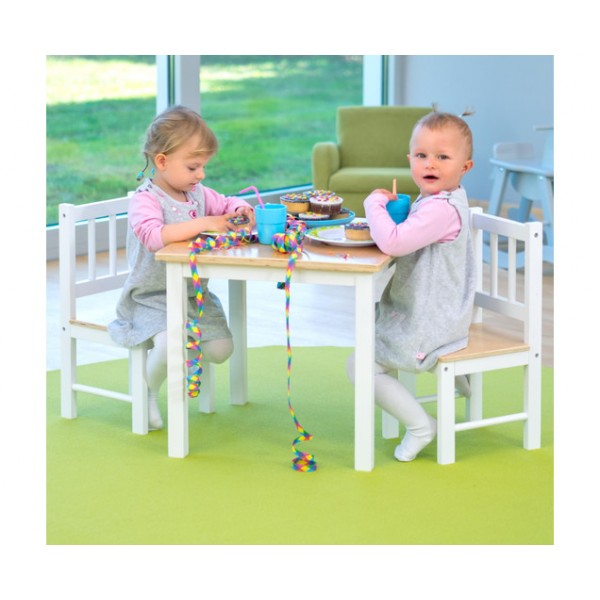 Setul conține o masă și 2 scaune pentru copii, ideal pentru colțul păpușilor, pentru bucătărie sau multe alte activități. Piesele sunt ușor de asamblat, foarte rezistente, de foarte bună calitate.