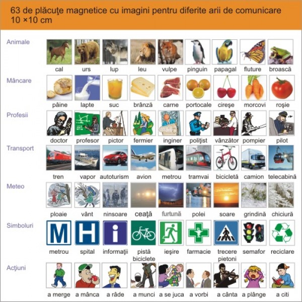 - 94 de plăcuțe cu imagini din diverse arii de comunicare 10x10 cm