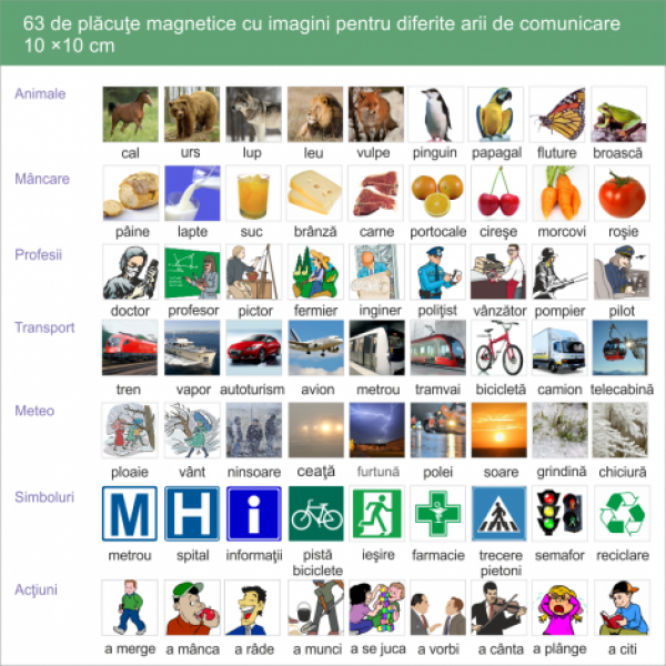 plăcuțe cu imagini din diverse arii de comunicare 10x10 cm