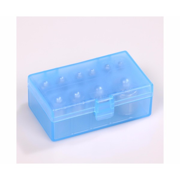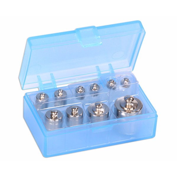 Greutatile sunt depozitate intr-o cutie de plastic cu capac.
