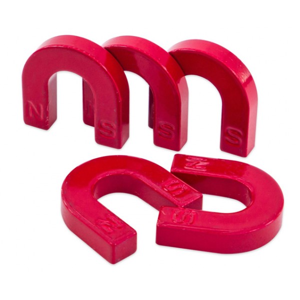 Cu acești magneți roșii din ferită, în formă de potcoavă, elevii pot face mici experimente cu magnetism, explorând în mod independent care obiecte și materiale sunt metalice și care nu sunt.